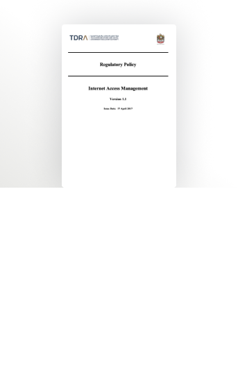 تحدد سياسة النفاذ إلى الإنترنت التوجيهات الإرشادية للاستخدام المقبول للإنترنت في جميع أنحاء دولة الإمارات بما في ذلك الأنظمة والإجراءات المطبقة على مزودي الخدمة والمحتوى المحظور. تغطي السياسة جميع جوانب مراقبة وتنظيم استخدام الإنترنت بموجب قوانين دولة الإمارات العربية المتحدة.