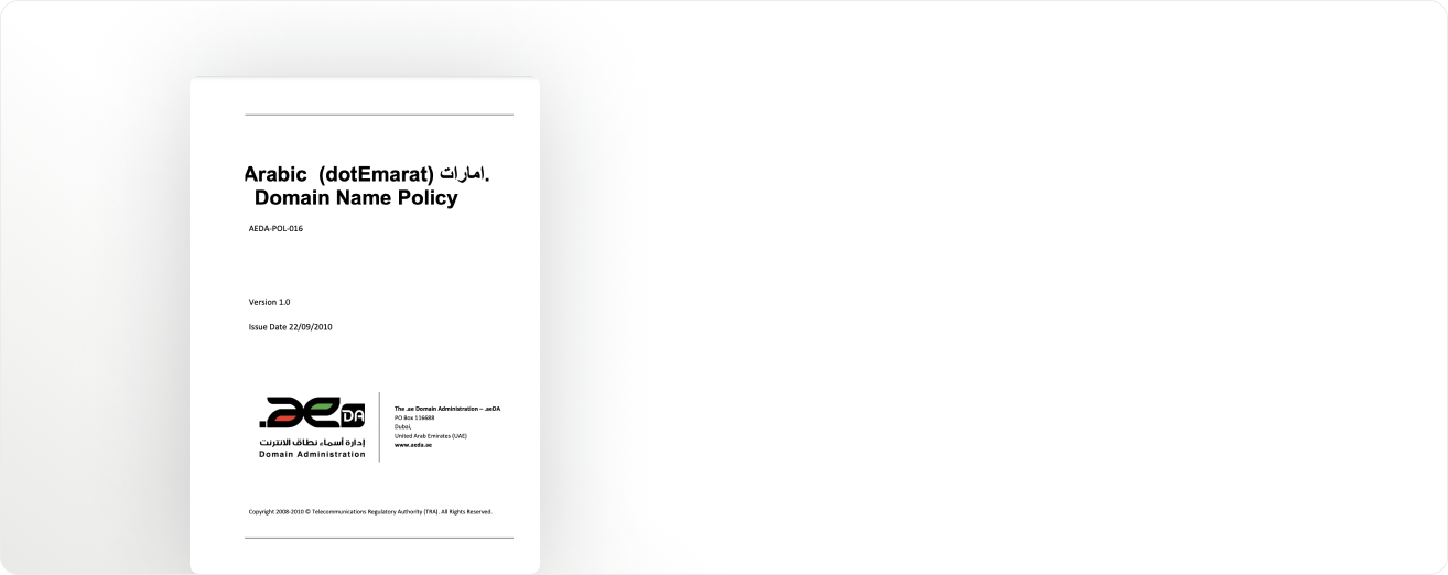The (dotEmarat) Arabic Domain Name is introduced for registration as the primary government domain name of the UAE. The domain names will be available for registration in different phases based on the business sectors. The Launch dotEmarat Policy provides an insight into a fair and equitable allocation of (dotEmarat) Arabic Domain Names.