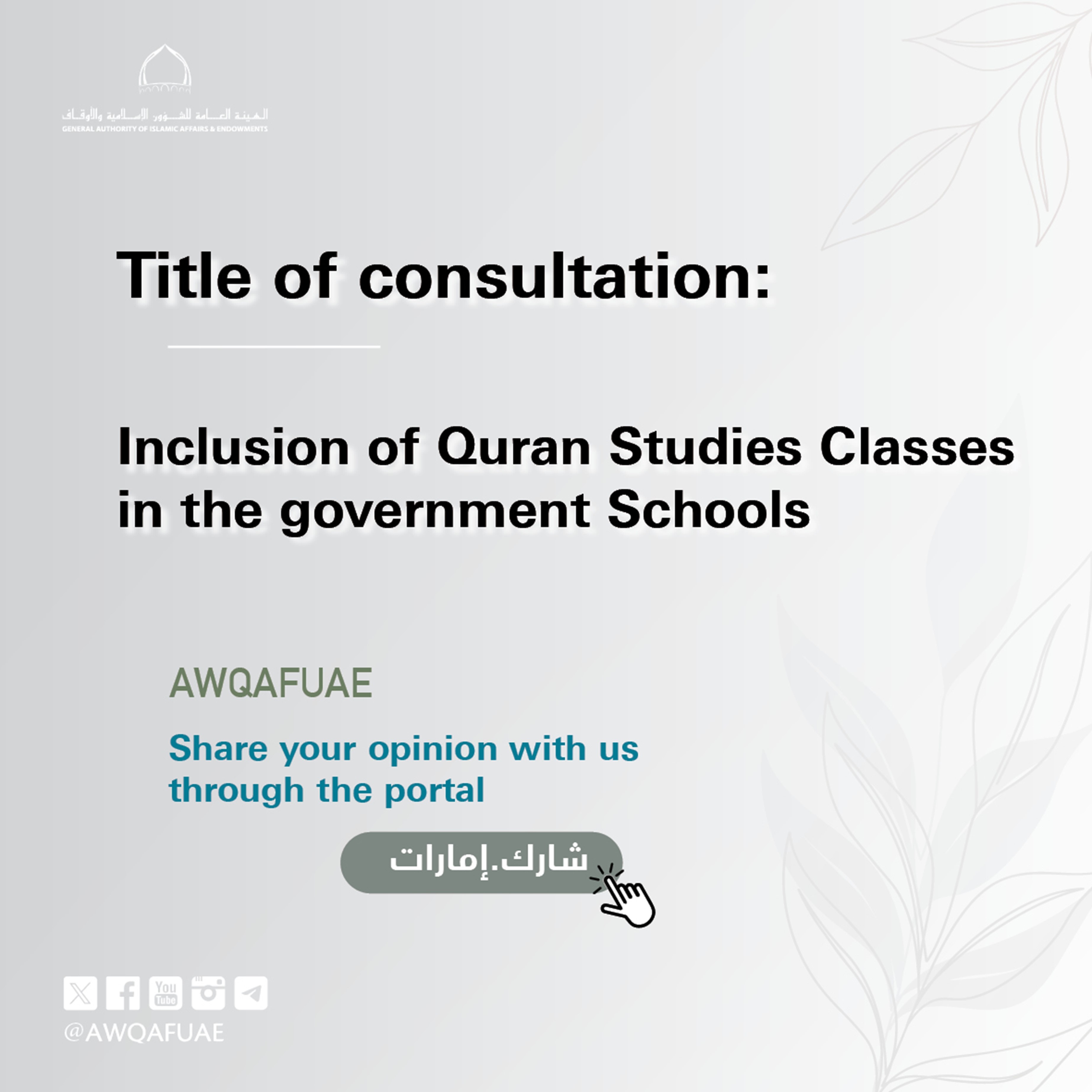 General Authority of Islamic Affairs and Endowments aims to implement Quran Education Service in the government schools as an